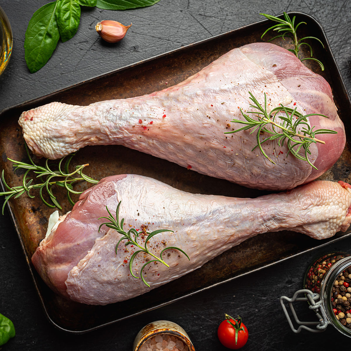Carne de peru, da zona da coxa e perna, com pele e com osso. (uma coxa = 1kg a 1,5kg)