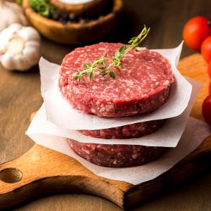 Carne picada de novilha, sem gordura, recheada com: alheira, queijo, fiambre, envolvido...